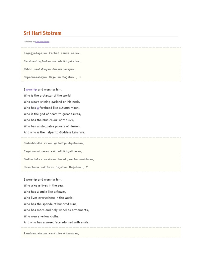 Jagajjalapalam Shri Hari Stotram Lyrics - Regular recitation of this octet ends all miseries.