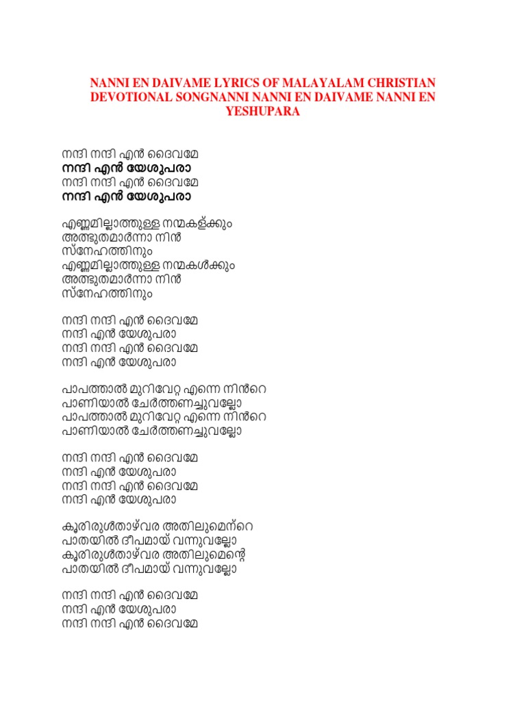 Nanni Nanni En Daivame Lyrics - Nanni yeshuve nanni yeshuve lyric christian worship malayalam by kester.