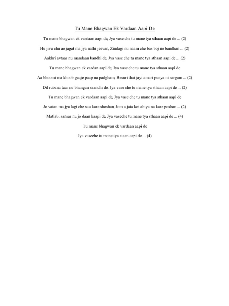 Tu Mane Bhagwan Ek Vardan Aapi De : Bhagwan pan bhulo padyo full song.